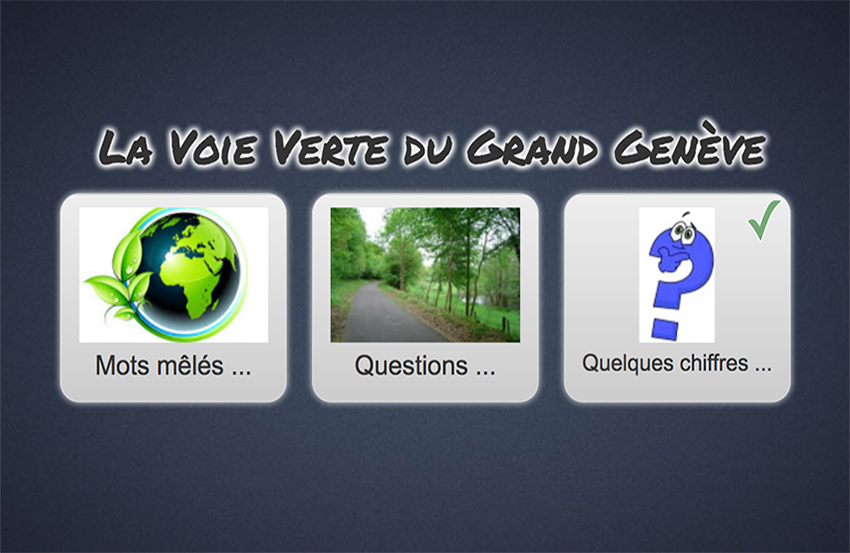 Cette application est présentée sous forme de QCM. Choisis la bonne réponse et tu apprendras pleins de choses sur la Voie Verte du Grand Genève.